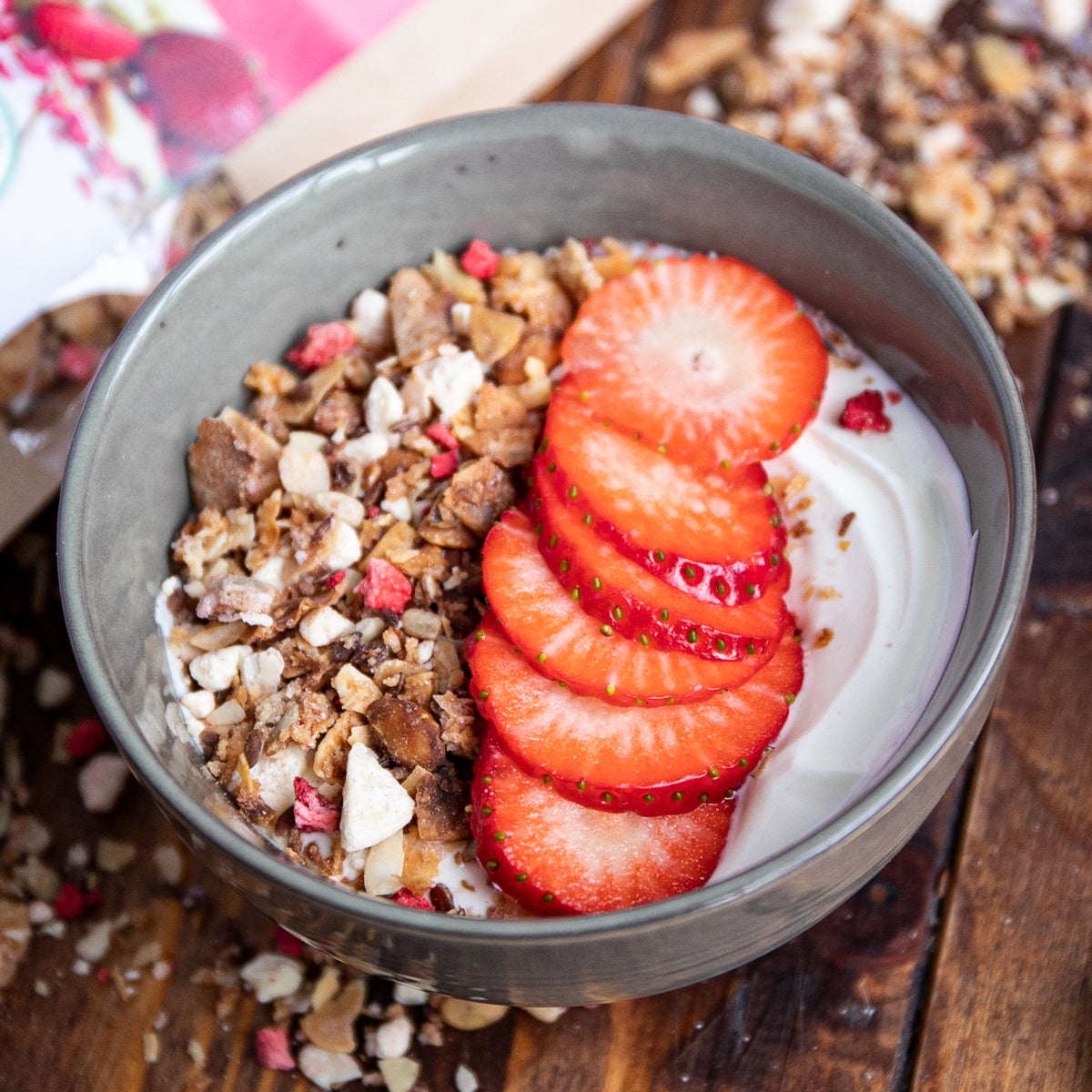 Simply Keto, maasikate ja valge šokolaadiga müsli 500g