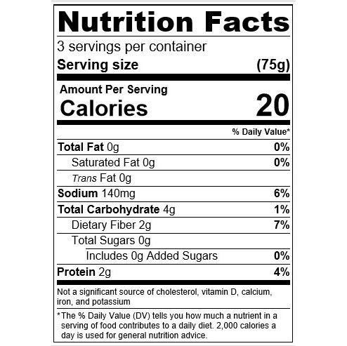 Ingredients: Water, natural sea salt, sliced hearts of palm, citric acid.