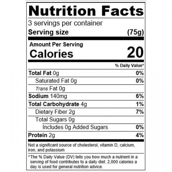 Ingredients: Water, natural sea salt, sliced hearts of palm, citric acid.